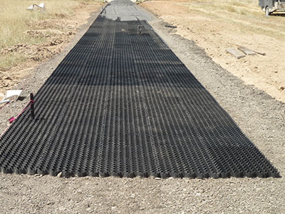GeoGrid is a cellular, interlocking, plastic paving slab made from HDPE (High-density polyethylene)