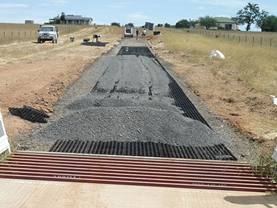 Clear as mud? Ok... In simple terms, GeoGrid is a plastic cellular paving grid for reinforcing grass, gravel or decorative stones, creating a surface that is safe and easy to walk, ride and drive on, while being free draining. Surface water is returned to the ground rather than putting pressure on drains and storm water systems.